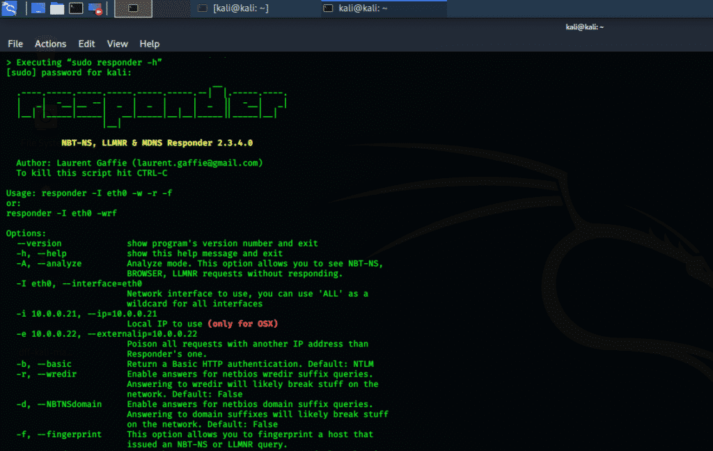The responder tool is a sniffing and spoofing tool that answers requests by the server. As the name implies, this tool only responds to a Filer server service call request. This improves the stealth of the target network and ensures the legitimacy of the NetBIOS Name Service (NBT-NS) typical behavior.