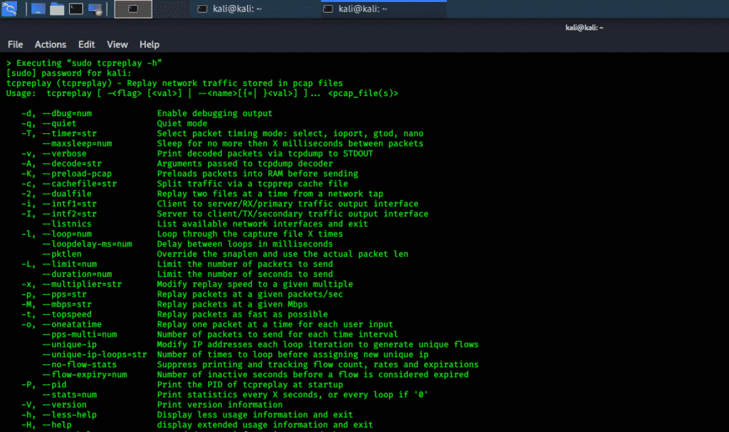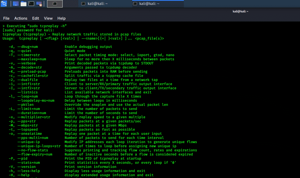 The tcpreplay tool is used to replay network packets stored in pcap files. This tool resends all the traffic generated in the network, stored in pcap, at its recorded speed; or, with the capability of quick operation of system.