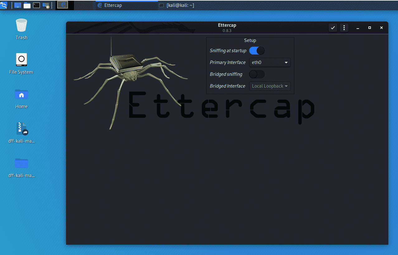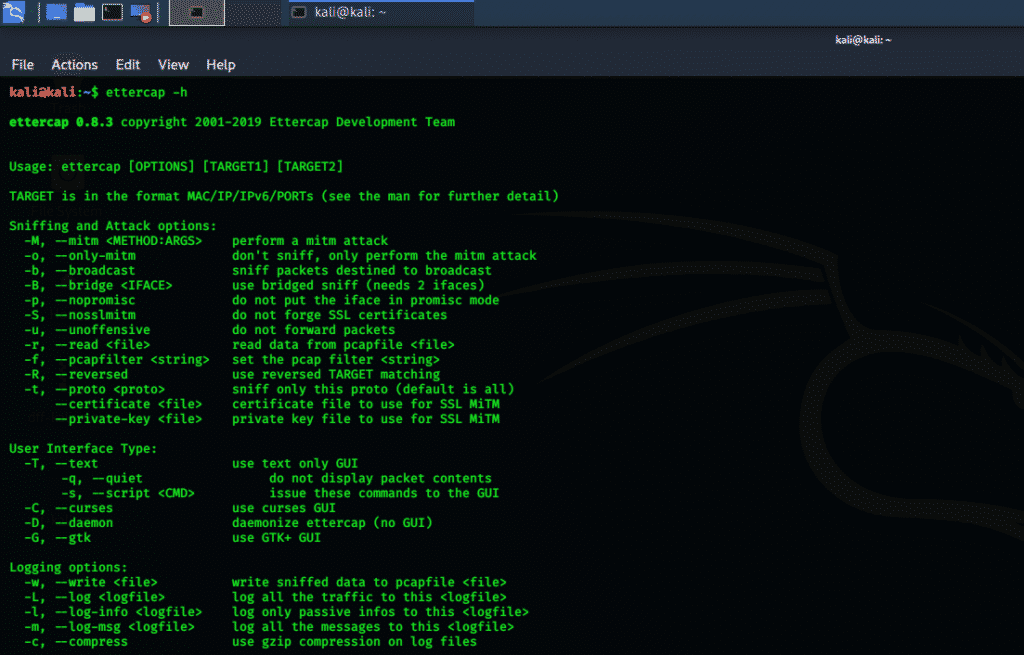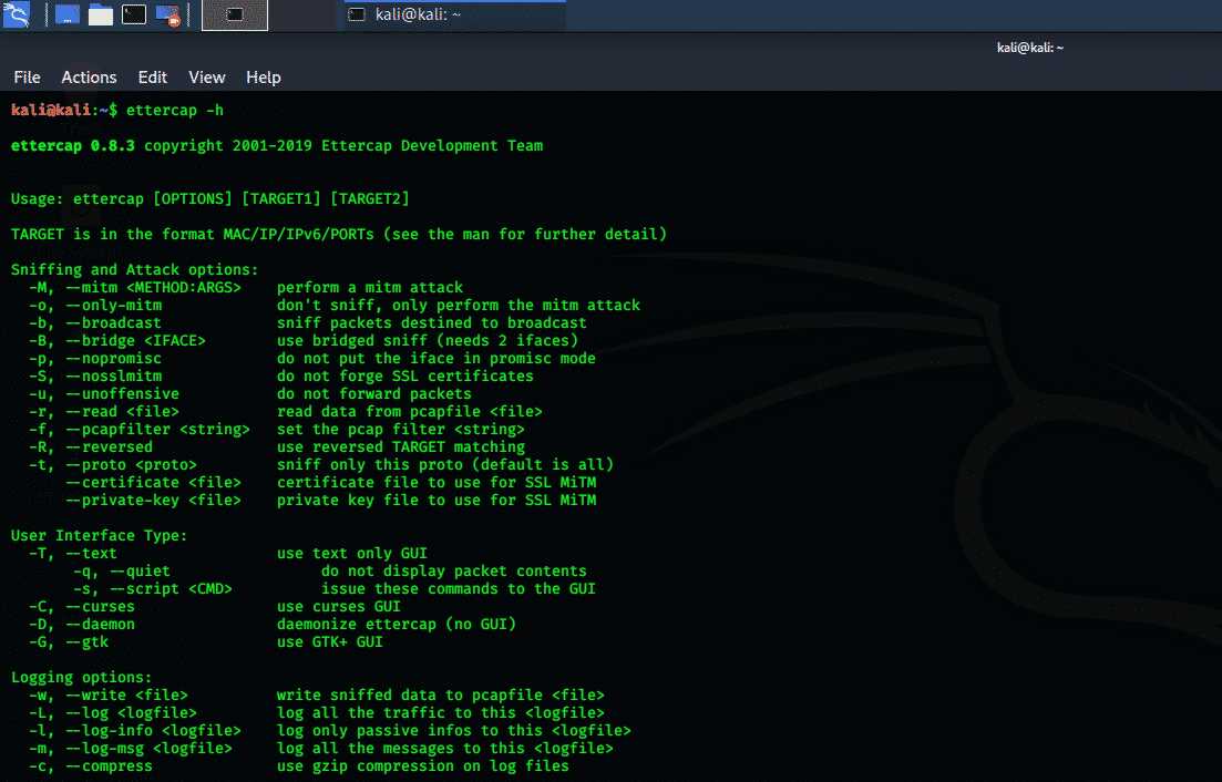 The Ettercap tool is a comprehensive toolkit for “man in the middle” attacks. This tool supports sniffing of live connections, in addition to filtering content on-the-fly. Ettercap can dissect various protocols actively and passively. This tool also includes many different options for network analysis, as well as host analysis. This tool has a GUI interface and the options are easy to use, even to a new user.