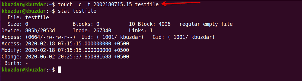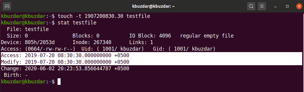 In the following example, we will change the timestamp of ‘testfile’ with some new timestamp.