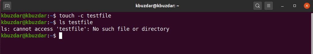 Using touch command, you can also avoid creating a new file. To prevent file creation, use the touch command with the ‘-c’ option, and the touch command will not create a new file if the file doesn’t exist already. Here is the syntax below: