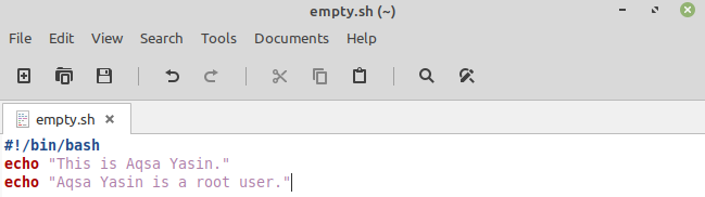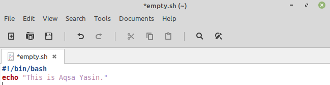 Now open the file “empty.sh” from your home directory. The file is empty, as shown.