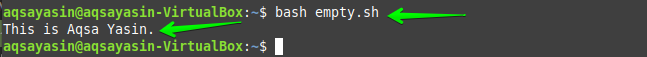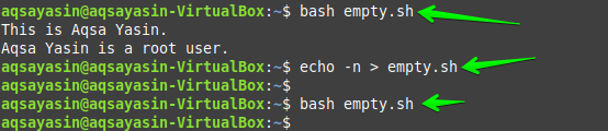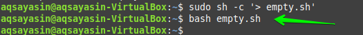 You can also empty a file using the “echo” command. Use the already created file “empty.sh” with some changes in its bash script as shown