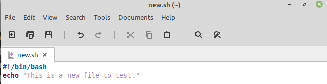 Now create another file named as “new.sh” with some bash script to test the “true” truncate command on it.