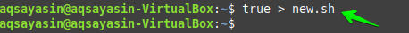 Now using the “true” command, I have truncated the file “new.sh”.