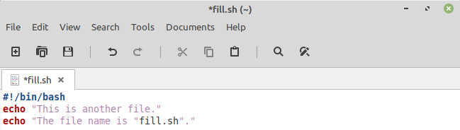 Now open the newly created file “fill.sh” and write some bash script in it.