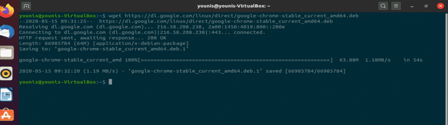When the wget is installed, then we are ready to continue with chrome installation. Enter the following command to get the Google Chrome installation file.