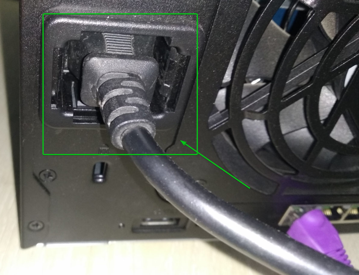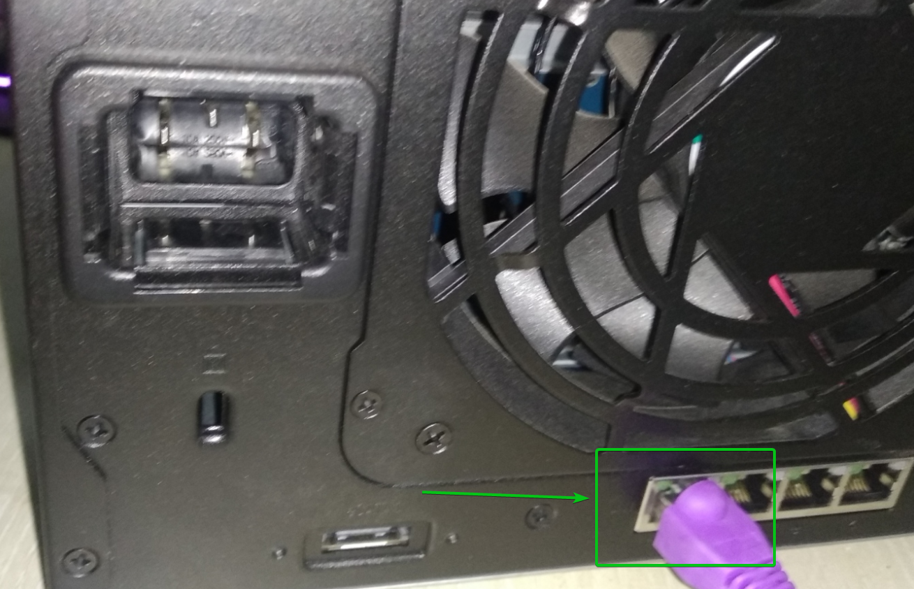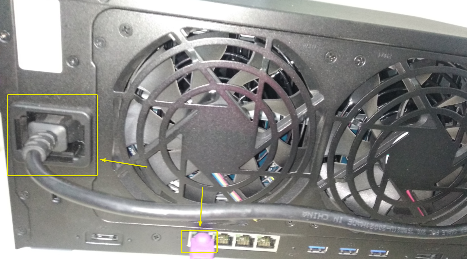 Now, connect the power cable and the RJ-45 cables to your NAS.
