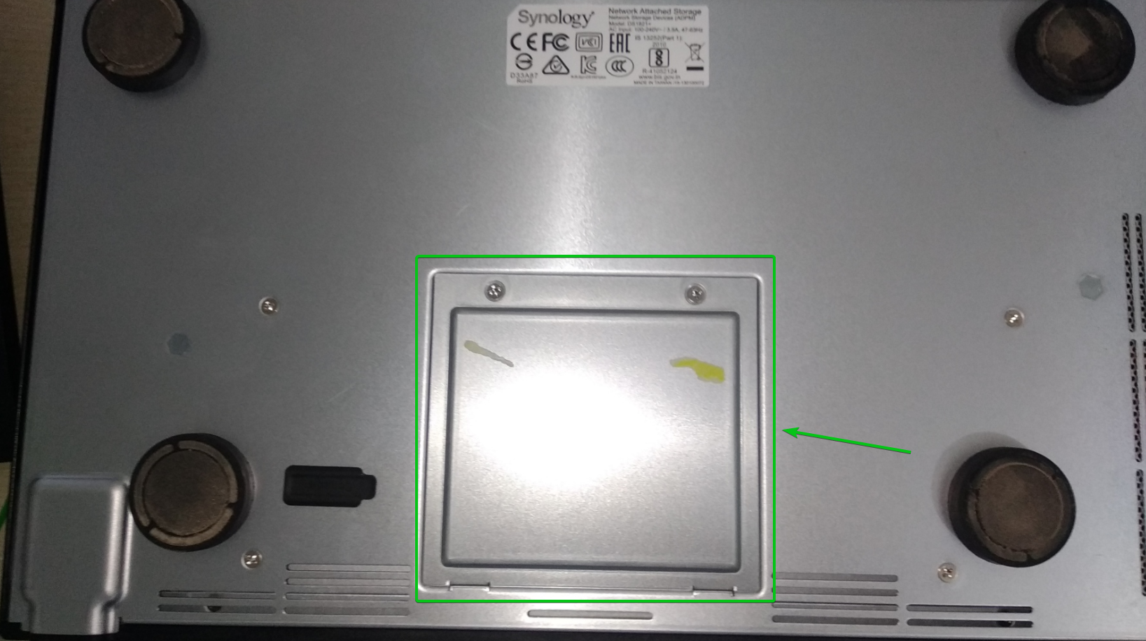 First, flip your NAS, and you should find a cover, as you can see in the screenshot below.