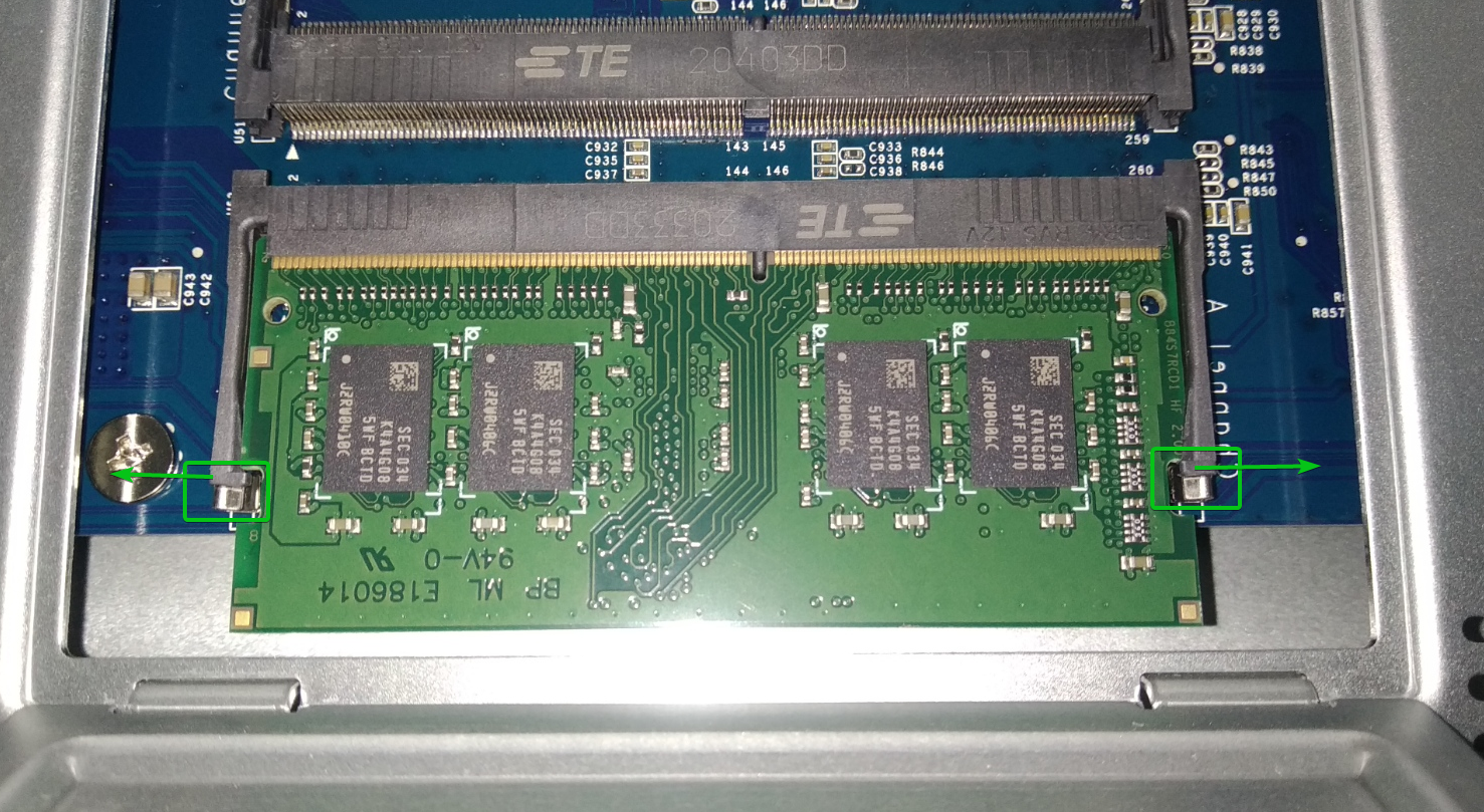 To remove the memory module that is already installed, gently push the levers on both sides of the memory module outward at the same time.