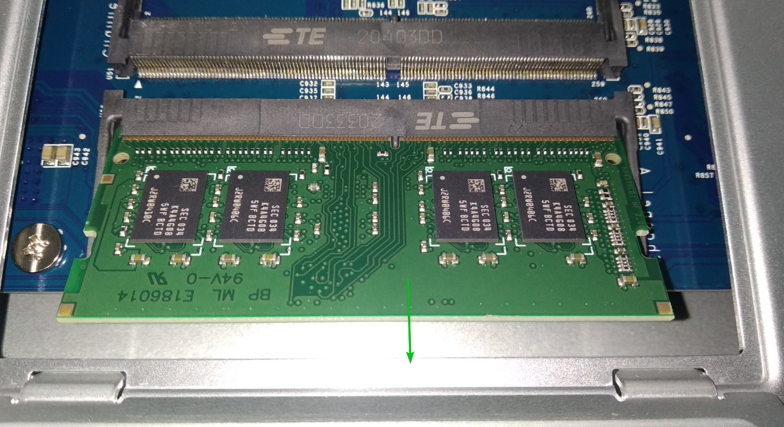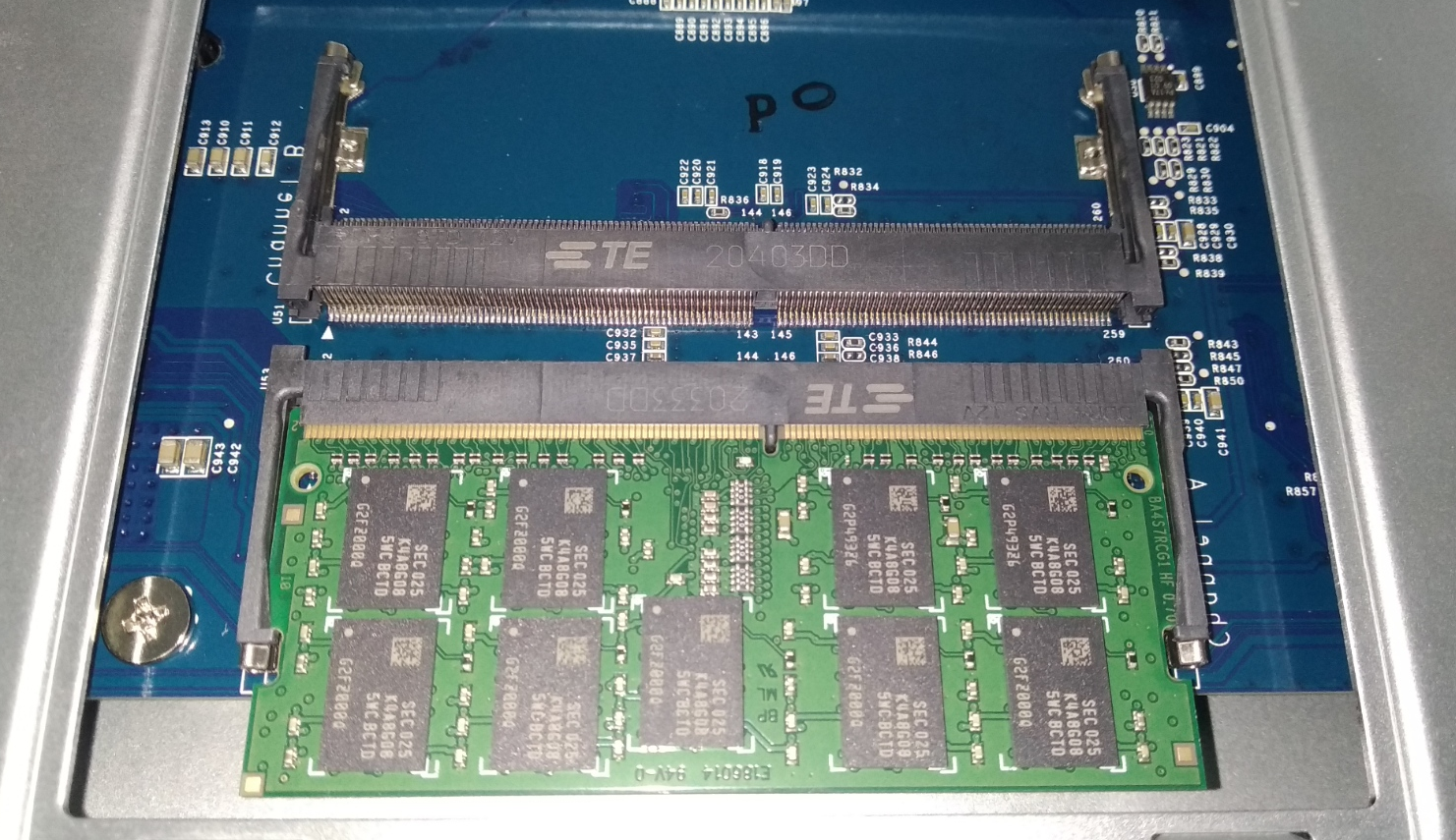 Now, I am going to install 2 of the 16 GB DDR4 SODIMM memory modules on the memory slots of the NAS.