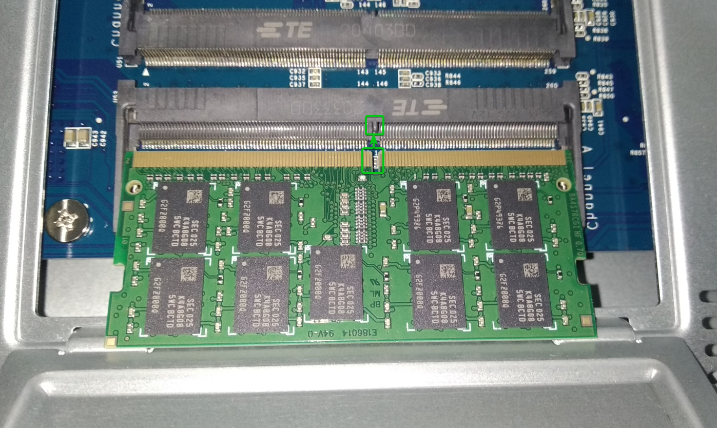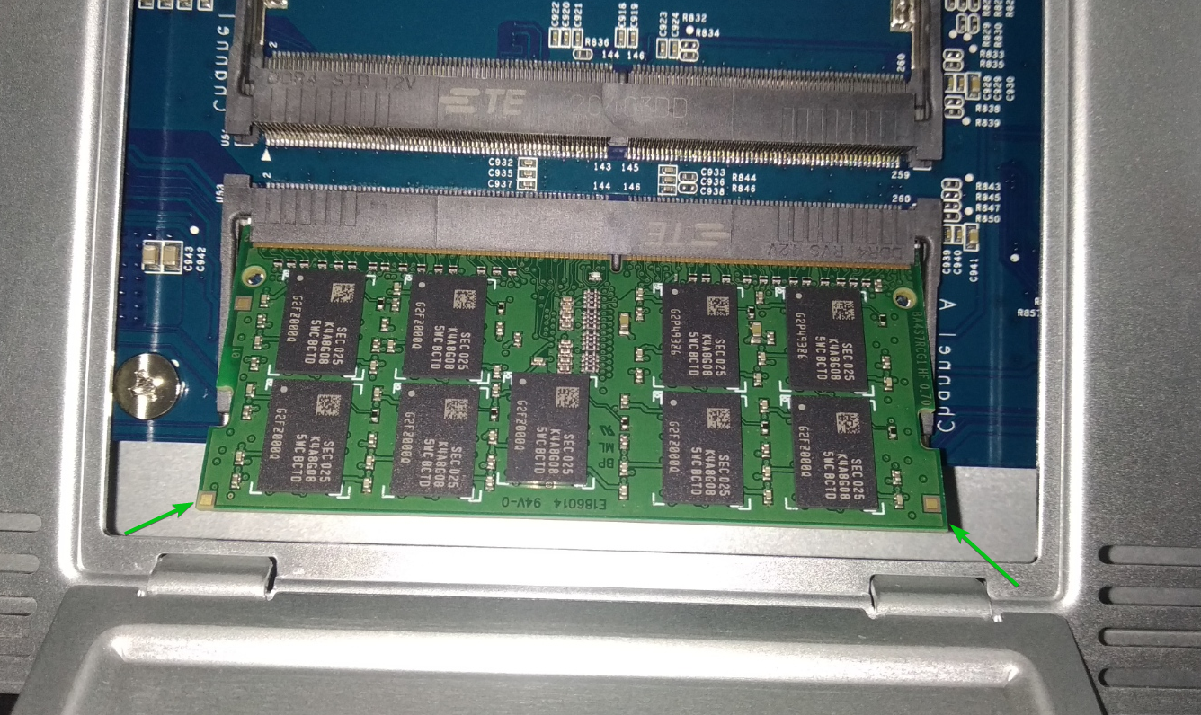 Similarly, align the notch of the other empty slot with the gap between the gold connectors of the memory module and gently push the memory module into the slot.
