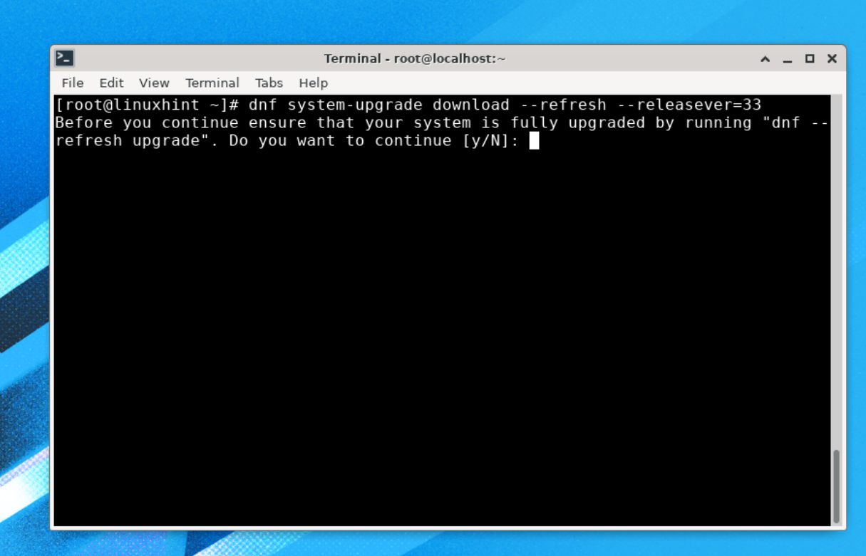 When you run the above command, it will ask to run the “dnf upgrade –refresh” command to ensure that the system is up to date. Press ‘y’ and hit enter, so it can download any new update.