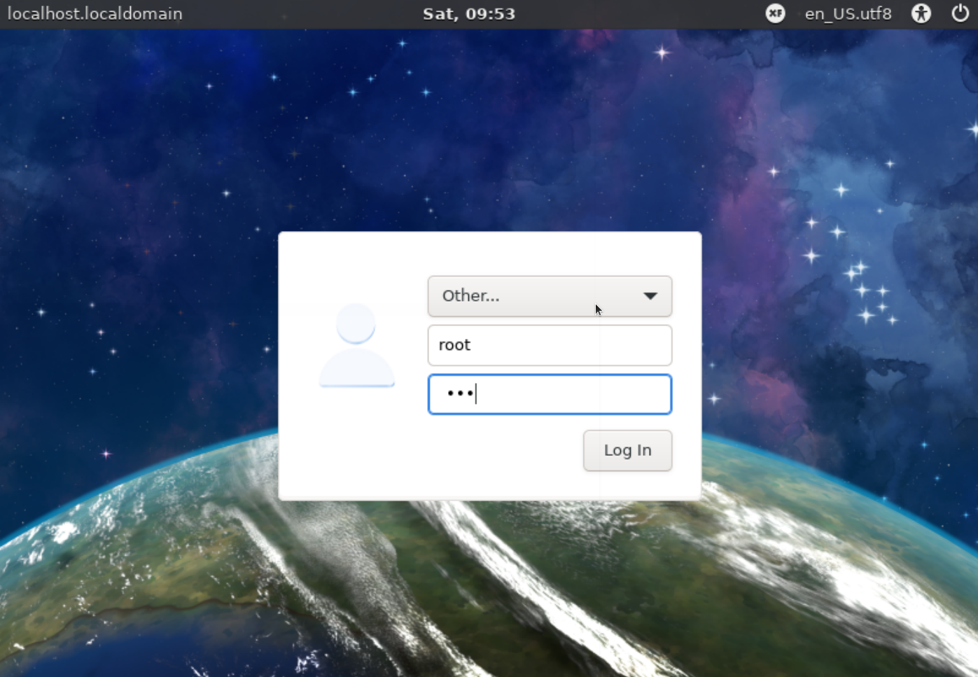 After the upgrade process is completed, you should see a new login screen for Fedora 33 OS, as shown here: