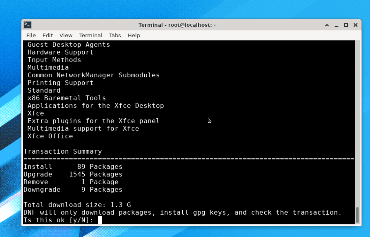 Step 2. At this point, we have to update the packages of our current Fedora OS with the following command: