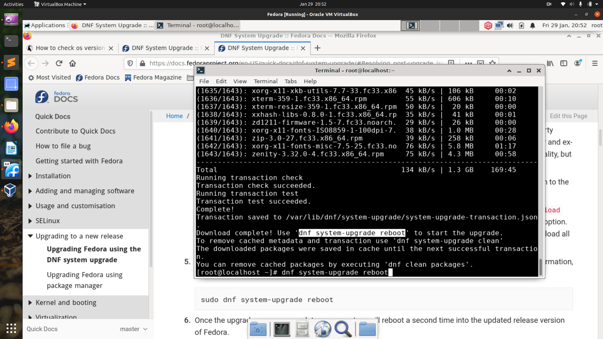 In this guide, we have seen how we can upgrade Fedora Linux using three different ways. We have also learned the main difference in using these upgrade methods. This guide has been successfully tested on Fedora 32 for upgrading to Fedora 33. If you have liked this HowTo guide, please share it with others.