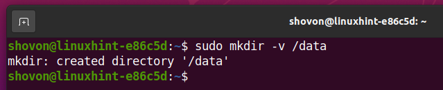 Create a directory /data with the following command: