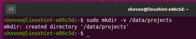 First, create a new directory /data/projects as follows: