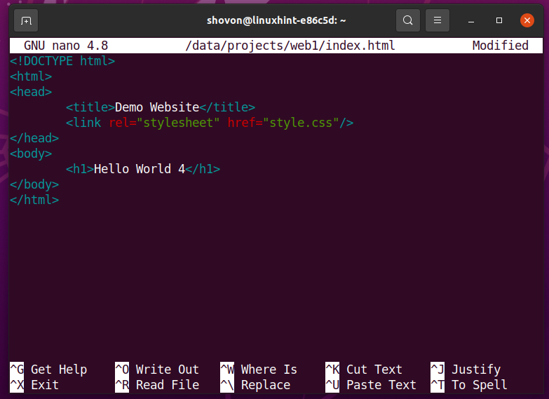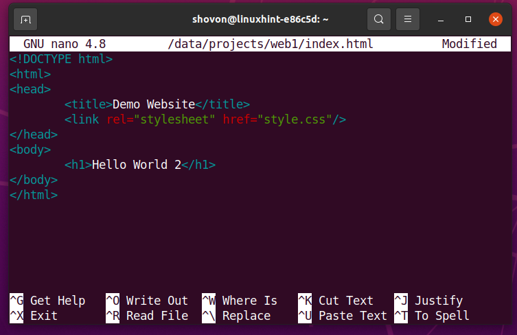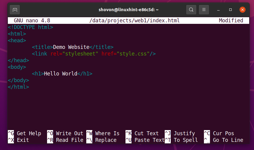 Once you’re done, press <Ctrl> + X followed by Y and <Enter> to save the index.html file.
