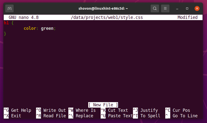 Once you’re done, press <Ctrl> + X followed by Y and <Enter> to save the style.css file.