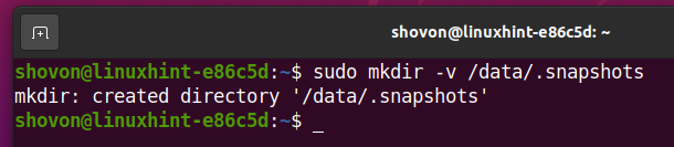 Create the /data/.snapshots directory with the following command: