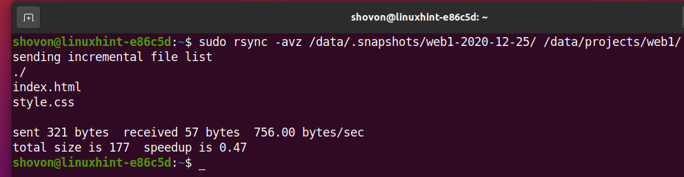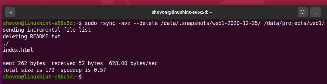 As you can see, the snapshot .snapshots/web1-2020-12-25 is no more.
