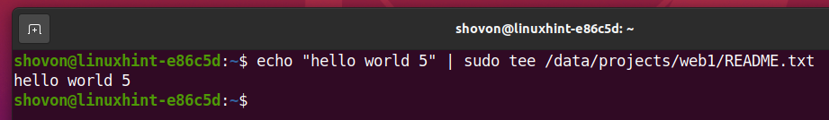 Let’s update the index.html file in the /data/projects/web1 subvolume.