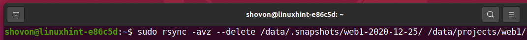 As you can see, the files/directories of the /data/.snapshots/web1-2020-12-25 snapshot is removed as well.