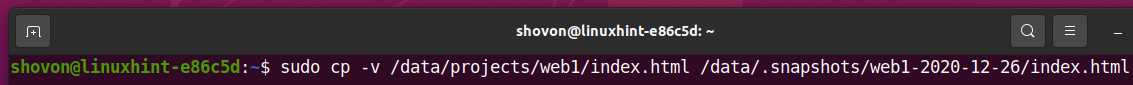 Let’s try to update the index.html file in the /data/.snapshots/web1-2020-12-26 snapshot.