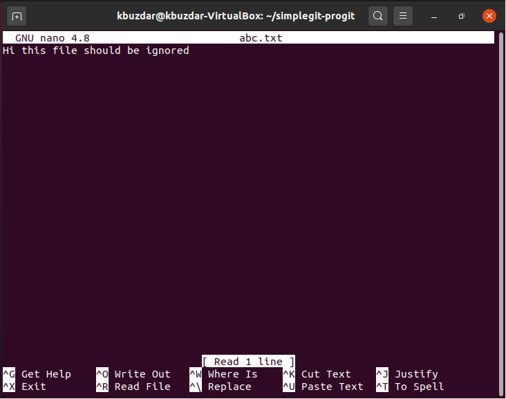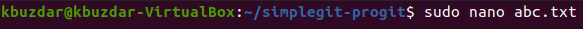 We have picked the file abc.txt from our Git project repository for modification. Now we will open this file with the nano editor in the manner shown below: