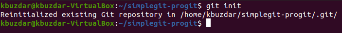 After executing this command, Git will reinitialize while displaying the message shown in the image below on your terminal: