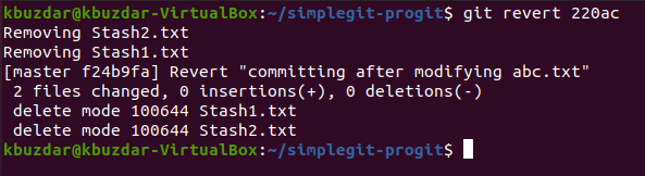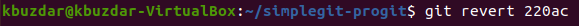 The first five characters of the transaction ID of our last transaction are 220ac. These characters will be used for referring to this commit. Now we will revert this commit with the help of the following command: