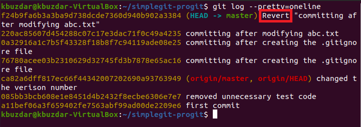 Step # 10: Verify if the “git revert” Command has worked successfully or not:
