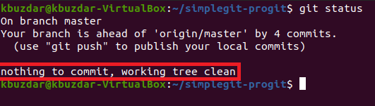 Although, we have already seen that our project Head is currently pointing to the revert transaction which is enough to indicate that the “git revert” command has functioned properly. However, we can still ensure it by checking the Git status. Here, we will be able to see that there will be no more files to be committed as the ones that were there previously i.e. Stash1 and Stash2 have already been deleted by the revert operation. Therefore, there will be no more new files to be committed as shown in the following image: