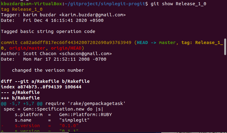 In the above command, we have printed the tag ‘Release_1_0’ details. In the following image, the tag details are displayed: