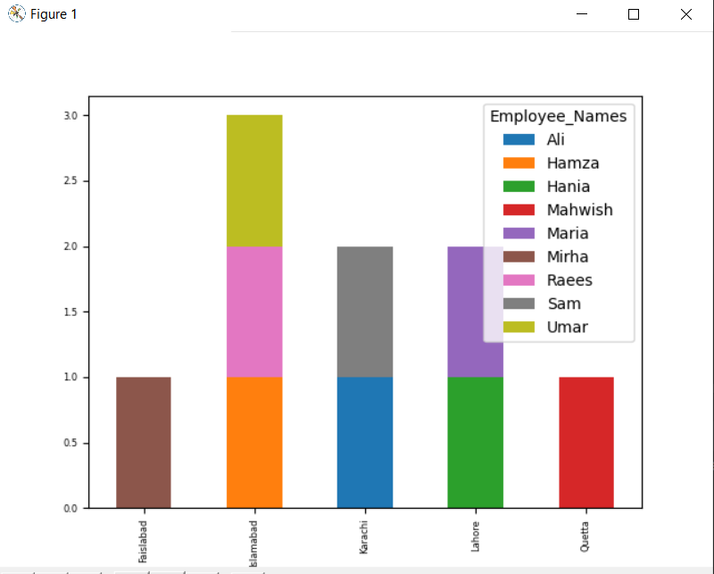 In the below-given graph, the number of employees stacked who belong to the same city.