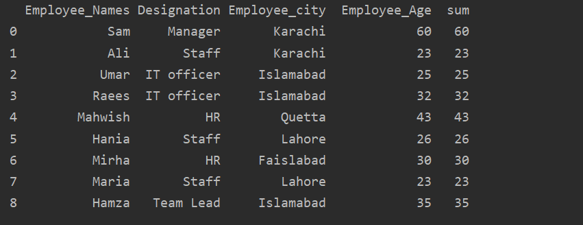 df['sum']=df.groupby(['Employee_Names'])['Employee_Age'].transform('sum')