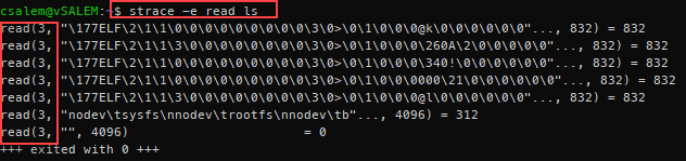 Although strace gives a lot of information regarding programs system calls, most instances will call on you to filter specific system calls. To do this, we pass the -e flag to the strace command followed by the name of the system call we need.