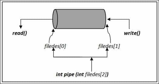 This function takes a single argument, an array of two integers (filedes). filedes[0] is used for reading from the pipe, and filedes[1] is used for writing to the pipe. The process which wants to read from the pipe should close filedes[1], and the process which wants to write to the pipe should close filedes[0]. If the unnecessary ends of the pipe are not explicitly closed, then end-of-file(EOF) will never be returned.