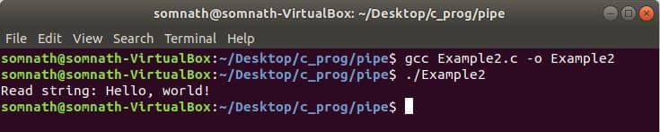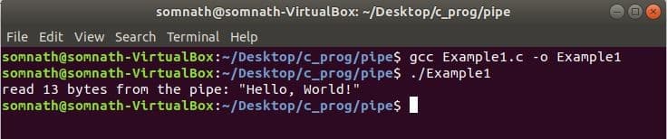 In this example, we will see how the pipe function works. Though using a pipe in a single process is not very useful, but we will get an idea.