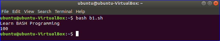 Copy the following code in a text editor and save the file with bash extension. In this script, one string and one numeric variables are declared.