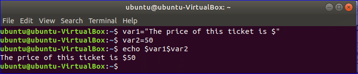 You don’t have to use any operator to combine two or more strings like other languages. Here, $var1 is used to store string value and $var2 is used to store a numeric value. Run the following commands from the terminal to combine two variables $var1 and $var2.