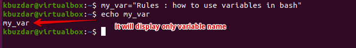 In the above command, the ‘$’ sign is removed with the variable name ‘echo my_var’. So, you will retrieve only the name of the variable on the output.