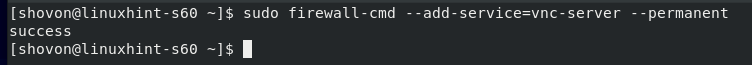 First, you have to allow the VNC port 5900 (default) through the CentOS 8 firewall. To do that, run the following command: