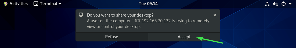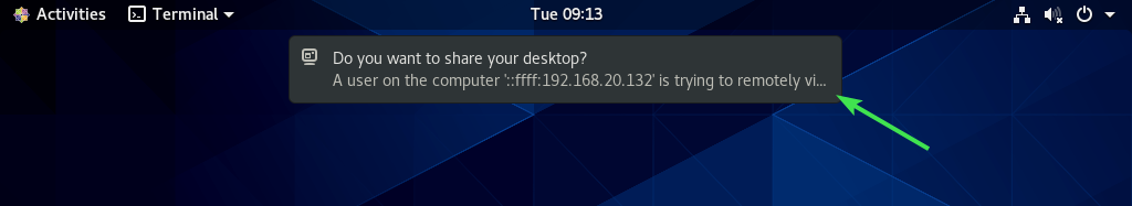 Once someone tries to connect to your CentOS 8 machine, you should see a notification as shown in the screenshot below.