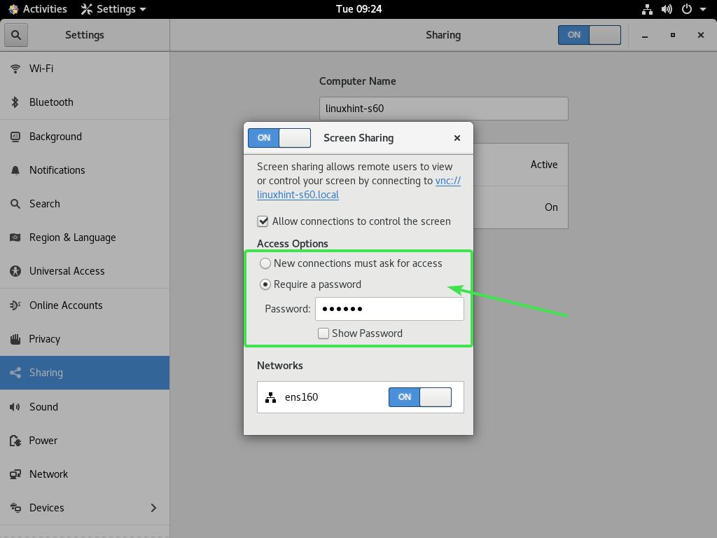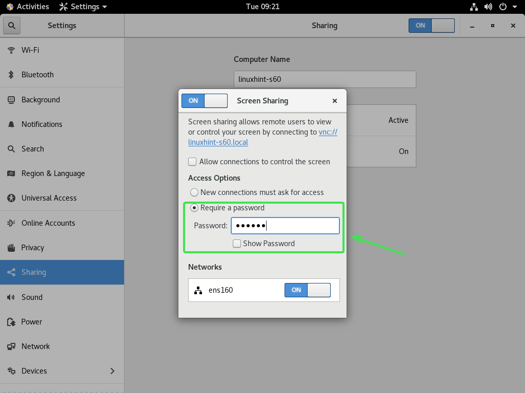 To do that, select Require a password from the Access Options section and type in your desired password.