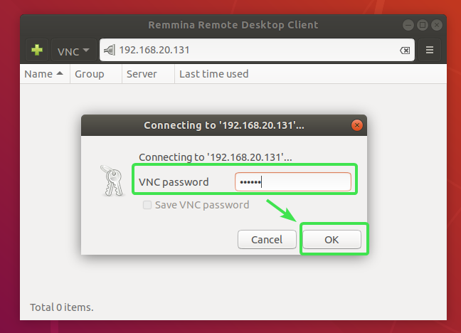 Now, if you try to connect to your CentOS 8 machine over the VNC protocol, you will be prompted for a password.