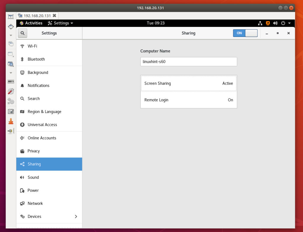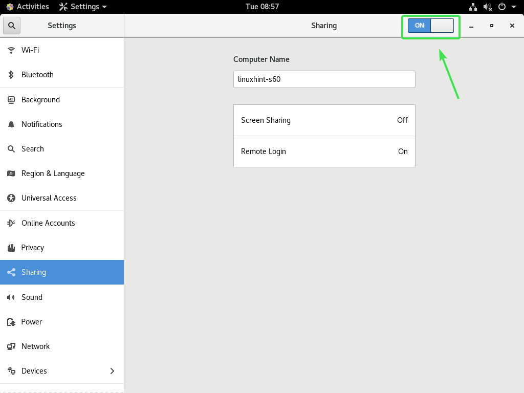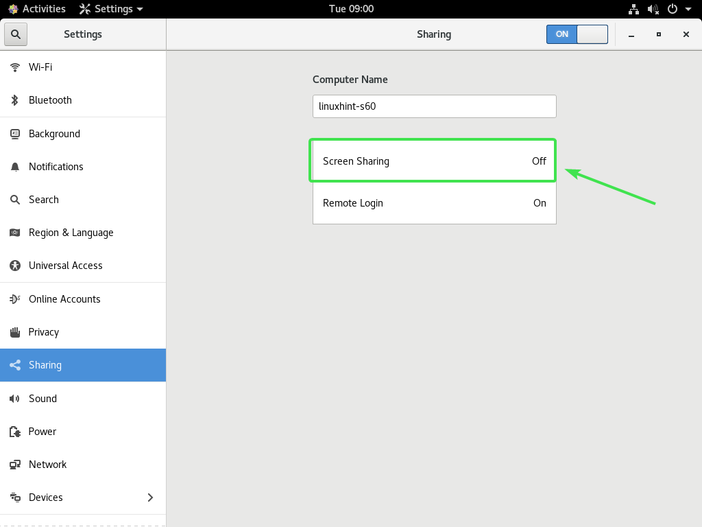 Now, navigate to the Sharing section. Make sure Sharing is turned ON.