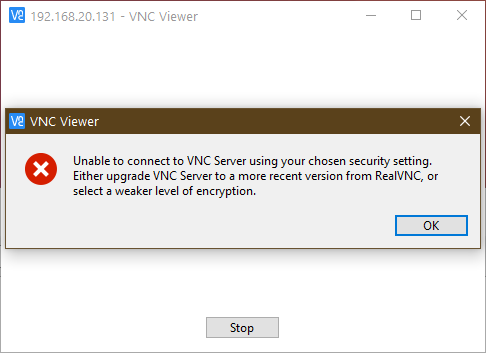 If you try to connect to the CentOS 8 machine using VNC Viewer especially on Windows 10, you will see the following error message.