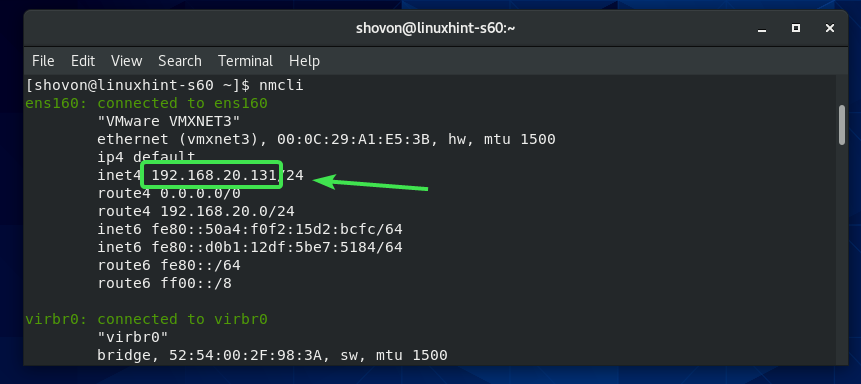 The IP address of your CentOS 8 machine should be printed. In my case, it’s 192.168.20.131.